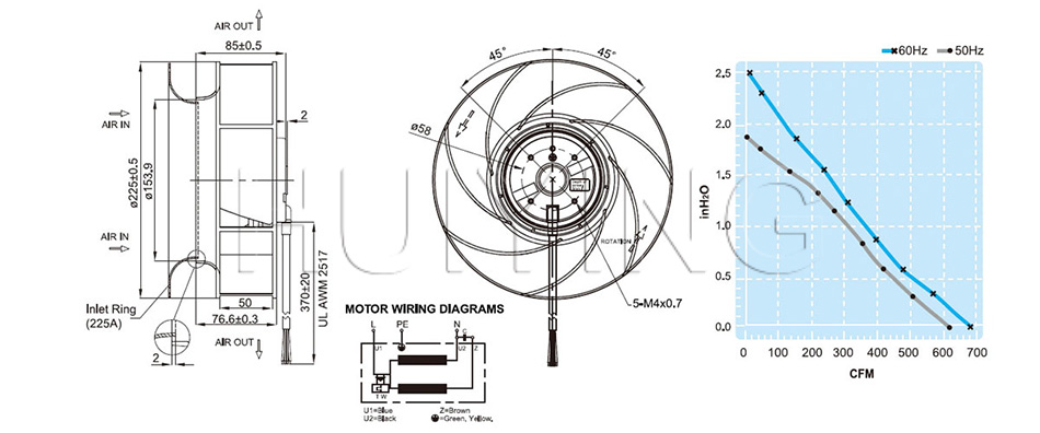 | 180(55) | 180mm(55mm Thick) | A | Air Discharge Out of Rotor Side | D | With Guard&Duct | |||||||||||||||